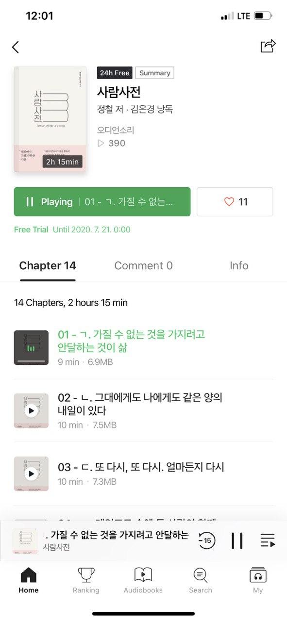 2020년 7월 20일 월요일 책 [네이버 오디오클립 하루 한 책] 무료로 풀린 책 “사람사전 – 정철 저 / 김은경 낭독” 입니다.