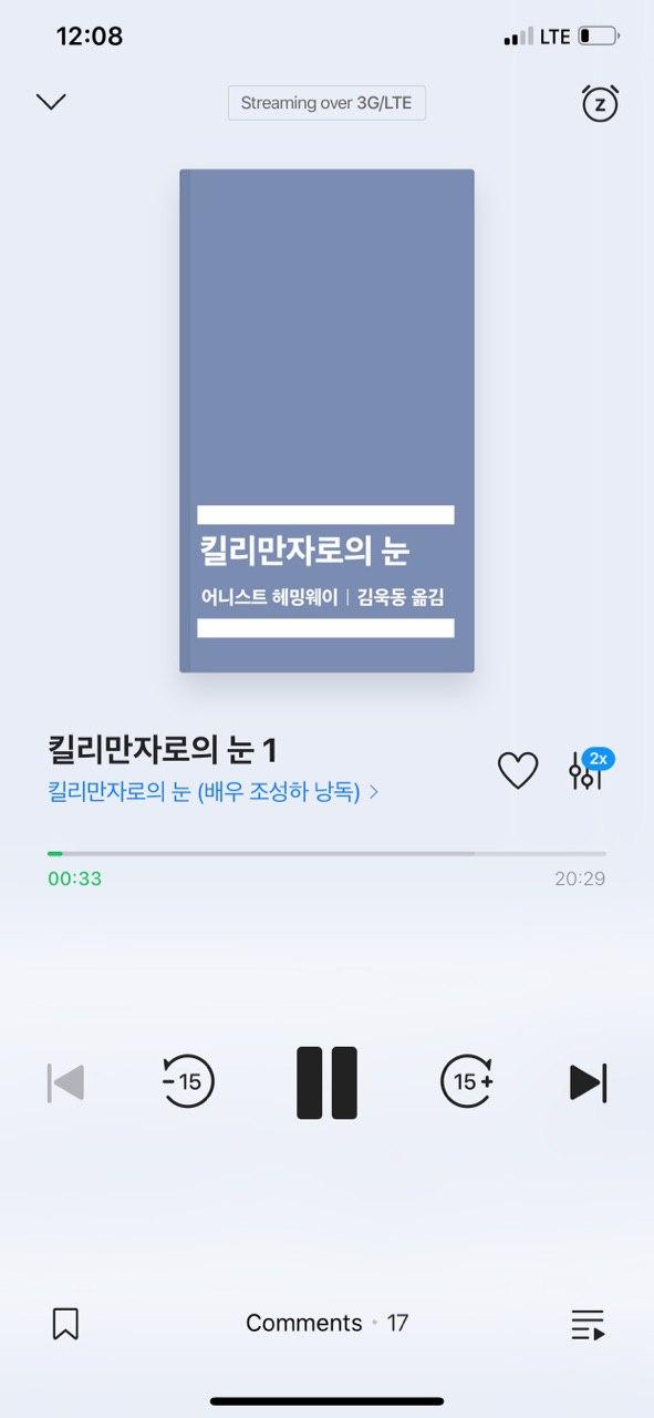 네이버 오디오클립 하루 한 책 무료 오디오북 [킬리만자로의 눈 – 어니스트 헤밍웨이 / 배우 조성하 낭독