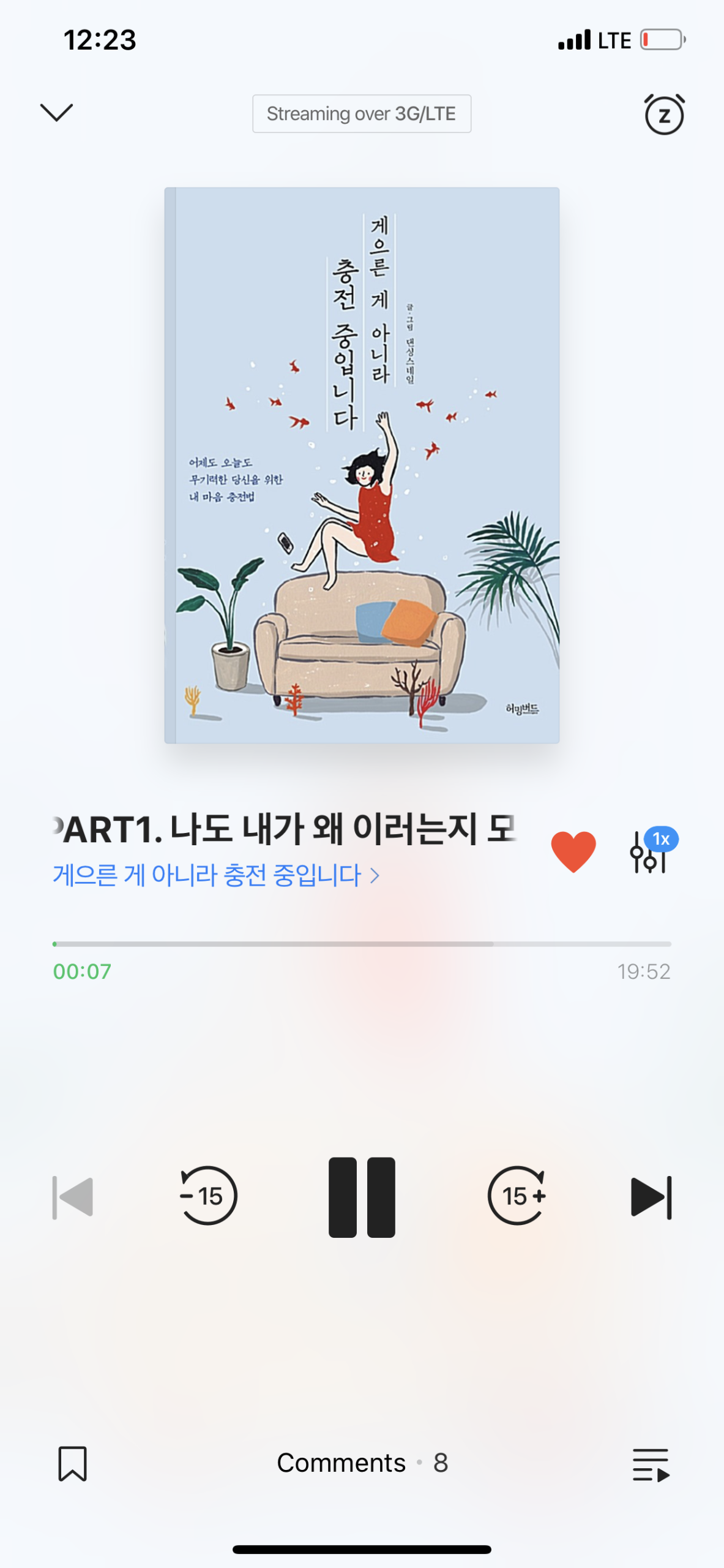 2020년 6월 29일 [네이버 오디오 클립 하루 한 책] 무료로 풀린 책인 “게으른 게 아니라 충전 중입니다  – 댄싱스네일 저 / 조경이 낭독”입니다.