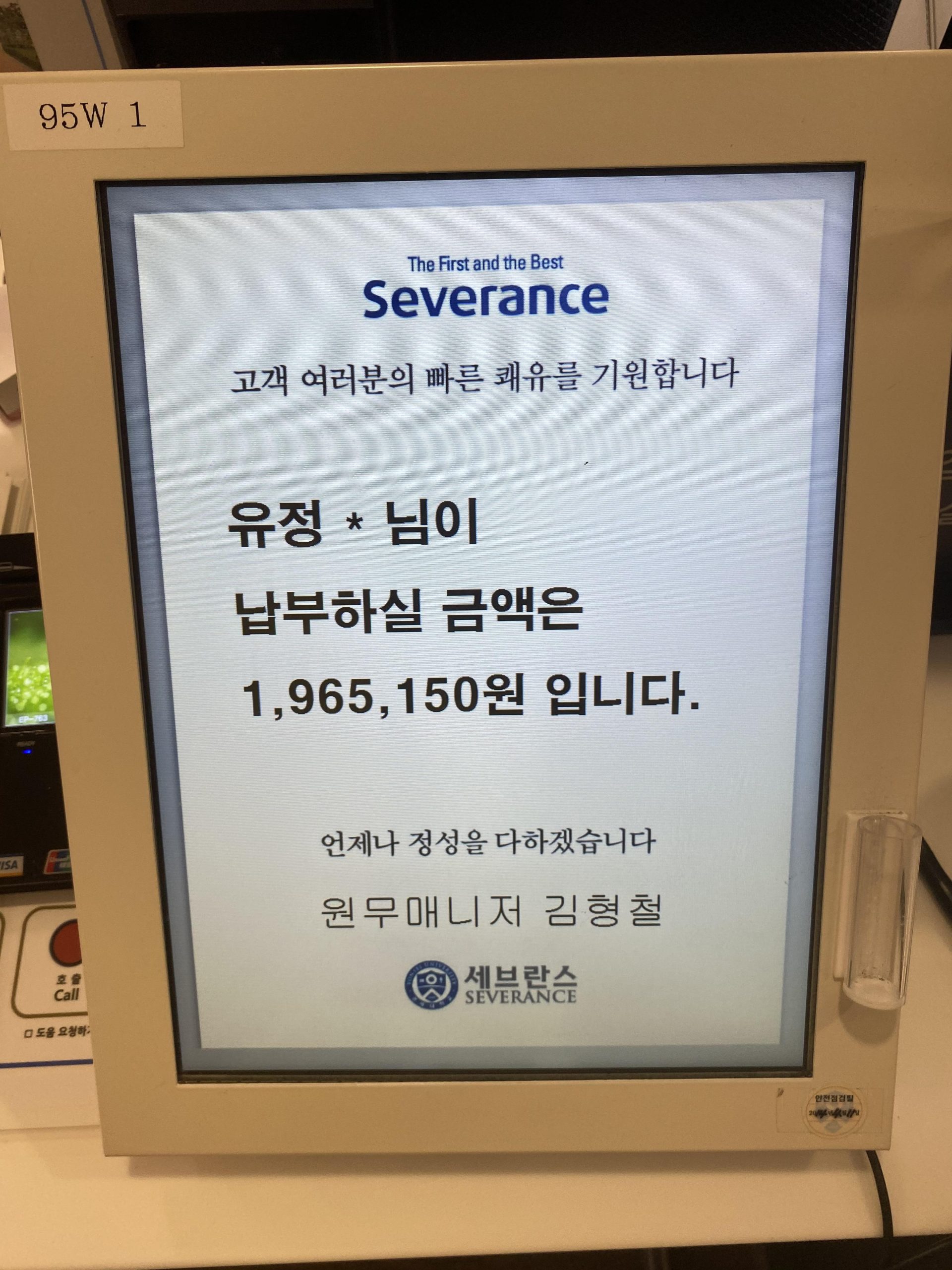 퇴원할때 비용을 수납하니 총 가격이 195만원 정도 나왔다.