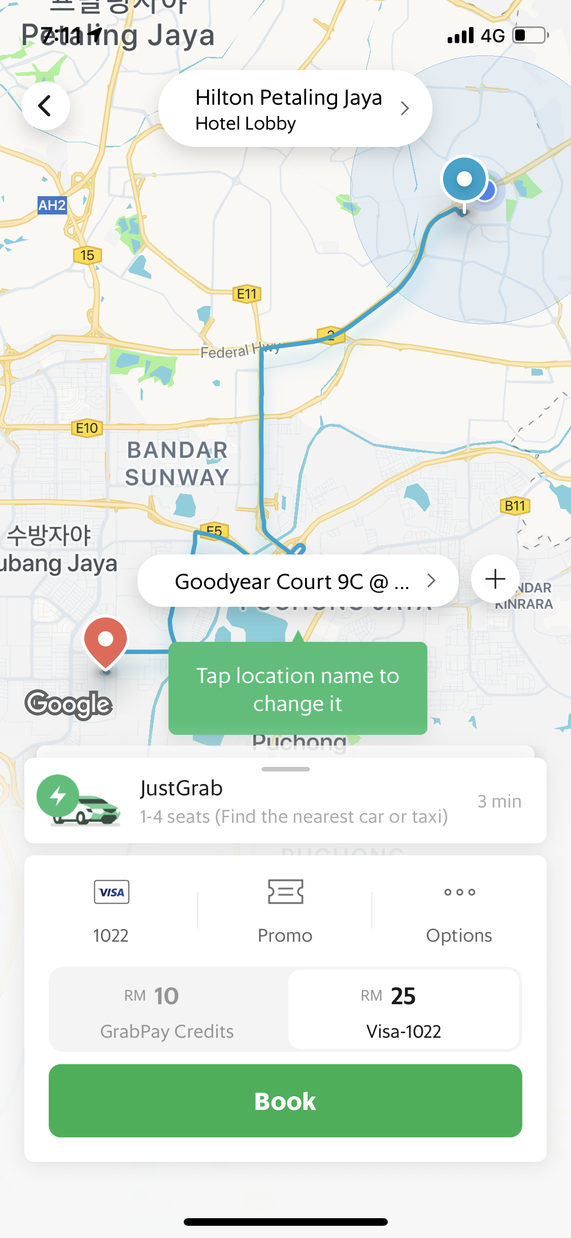 친구와 그랩을 잡고 친구의 숙소인 프탈링자야(Petaling Jaya) 힐튼 호텔로 출발했다.