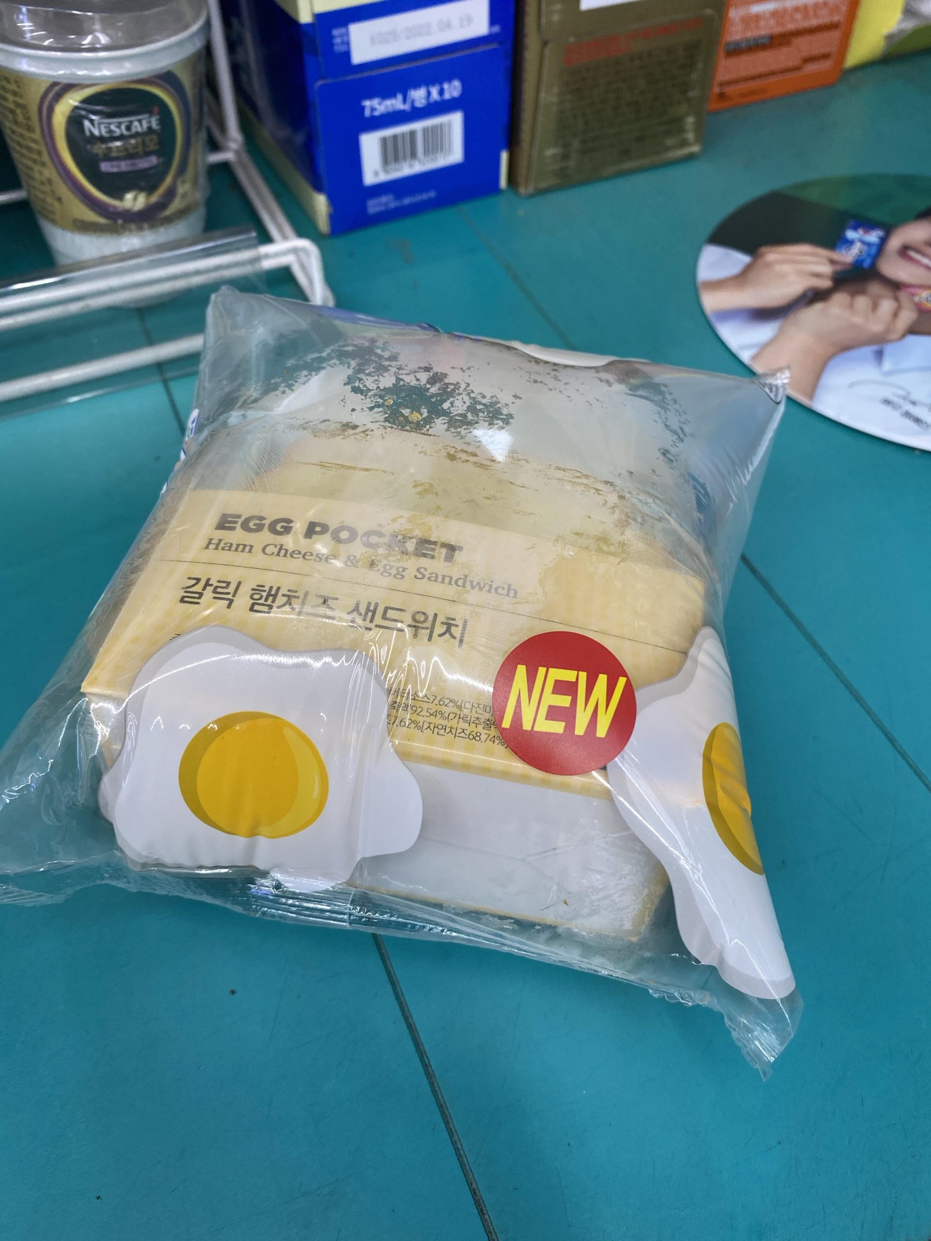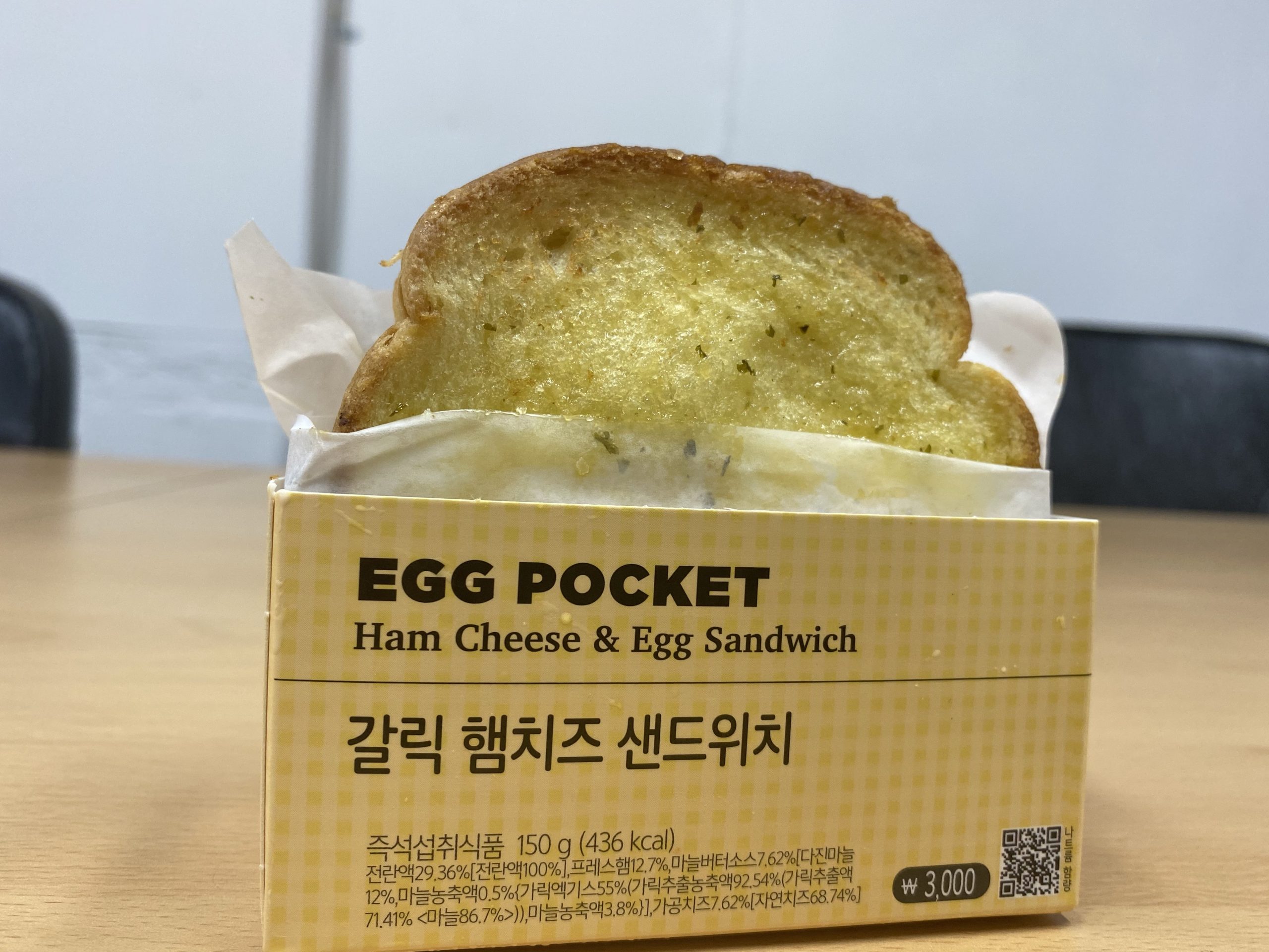 GS25의 에그포켓 갈릭 햄치즈 샌드위치를 한번 사보았습니다.