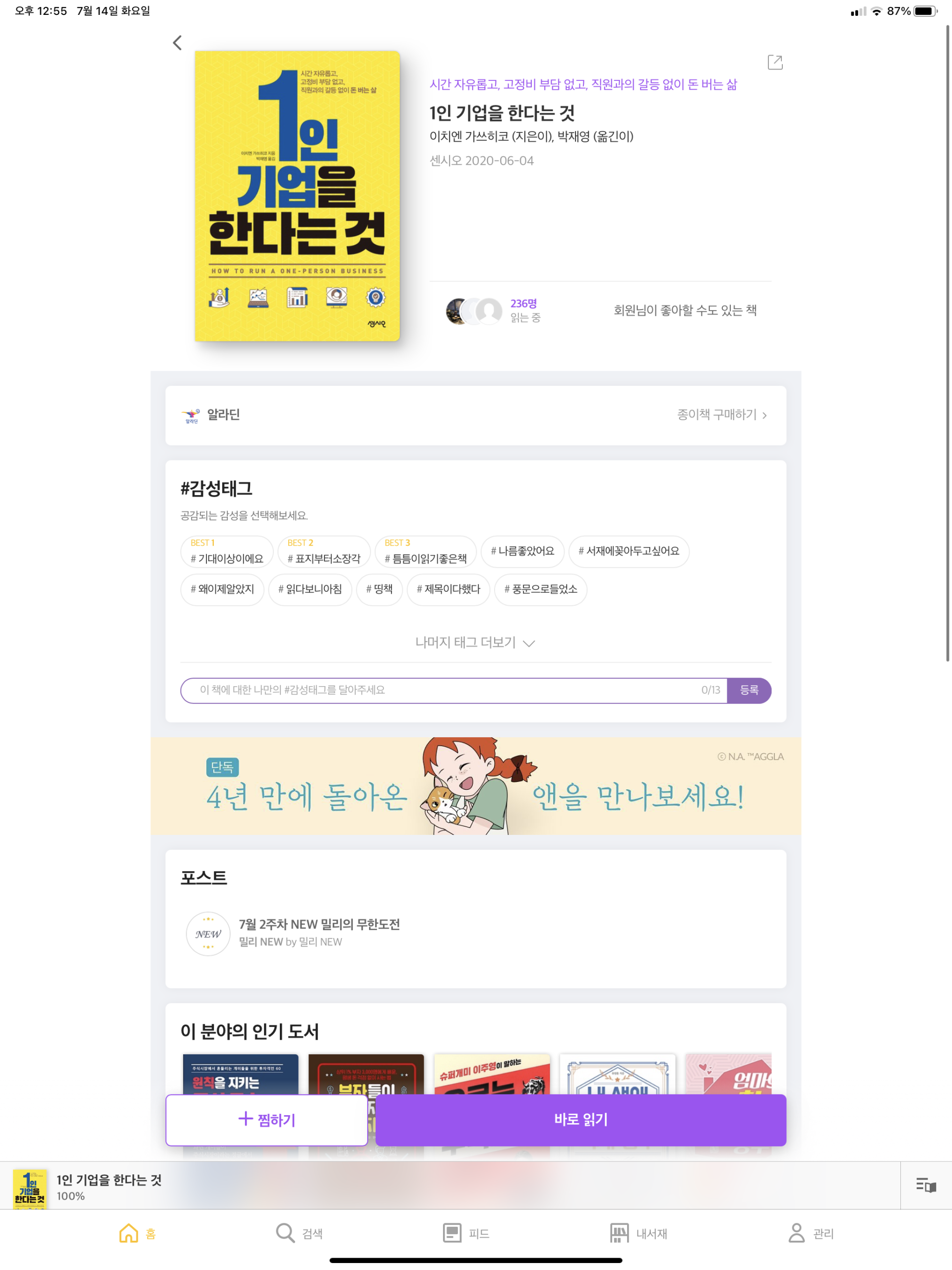 이 책을 읽으면서 나도 한번 1인기업을 꾸려 나가보고싶었다.