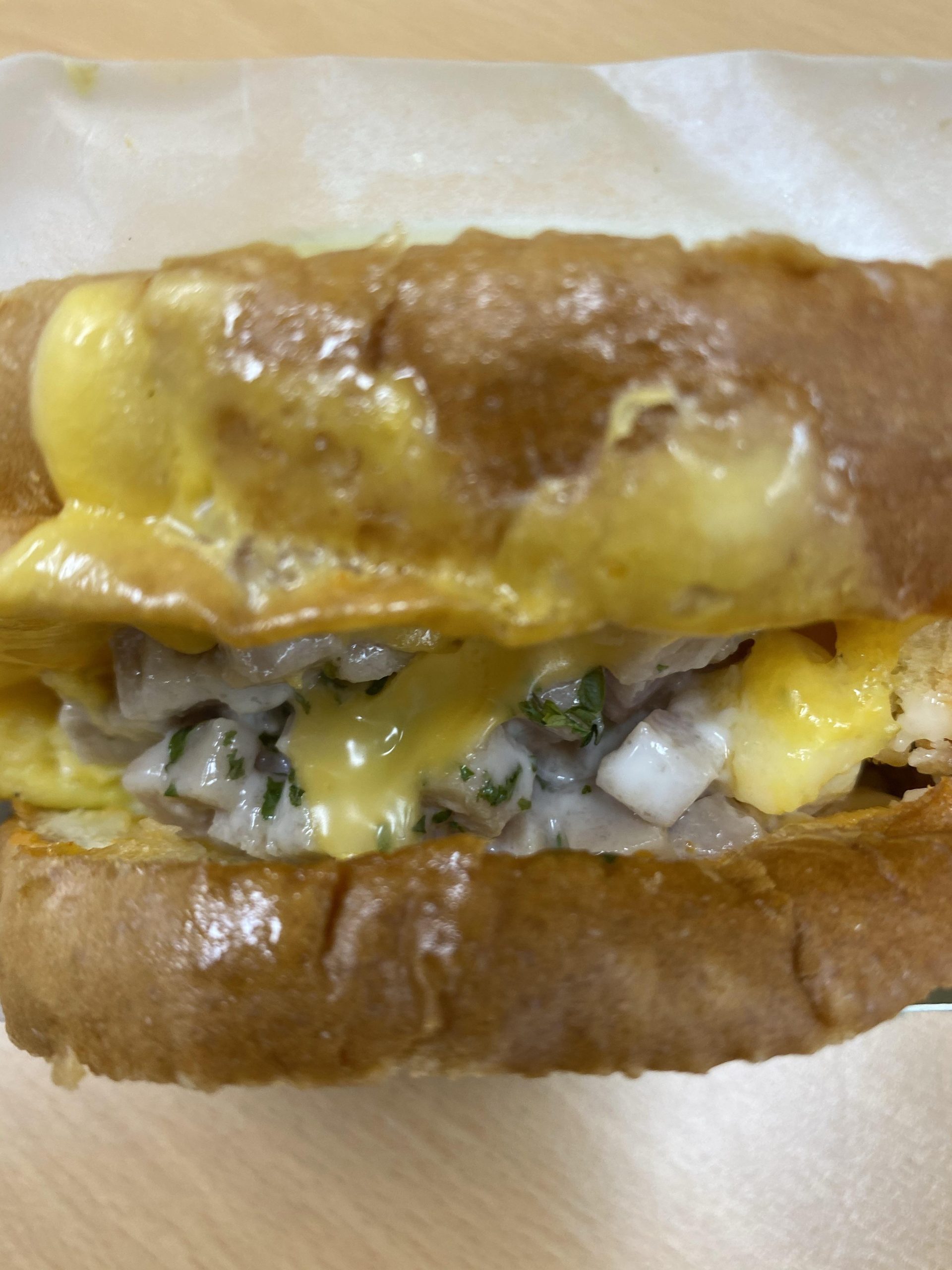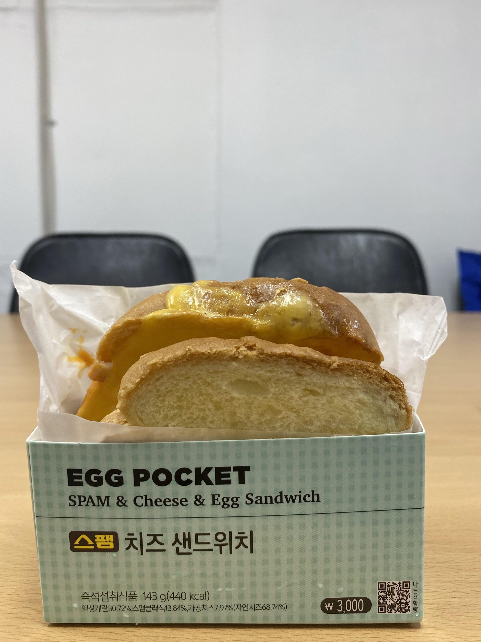그 와중에 스팸과 치즈의 짭쪼름한 맛이 잘 어우러진 샌드위치입니다.