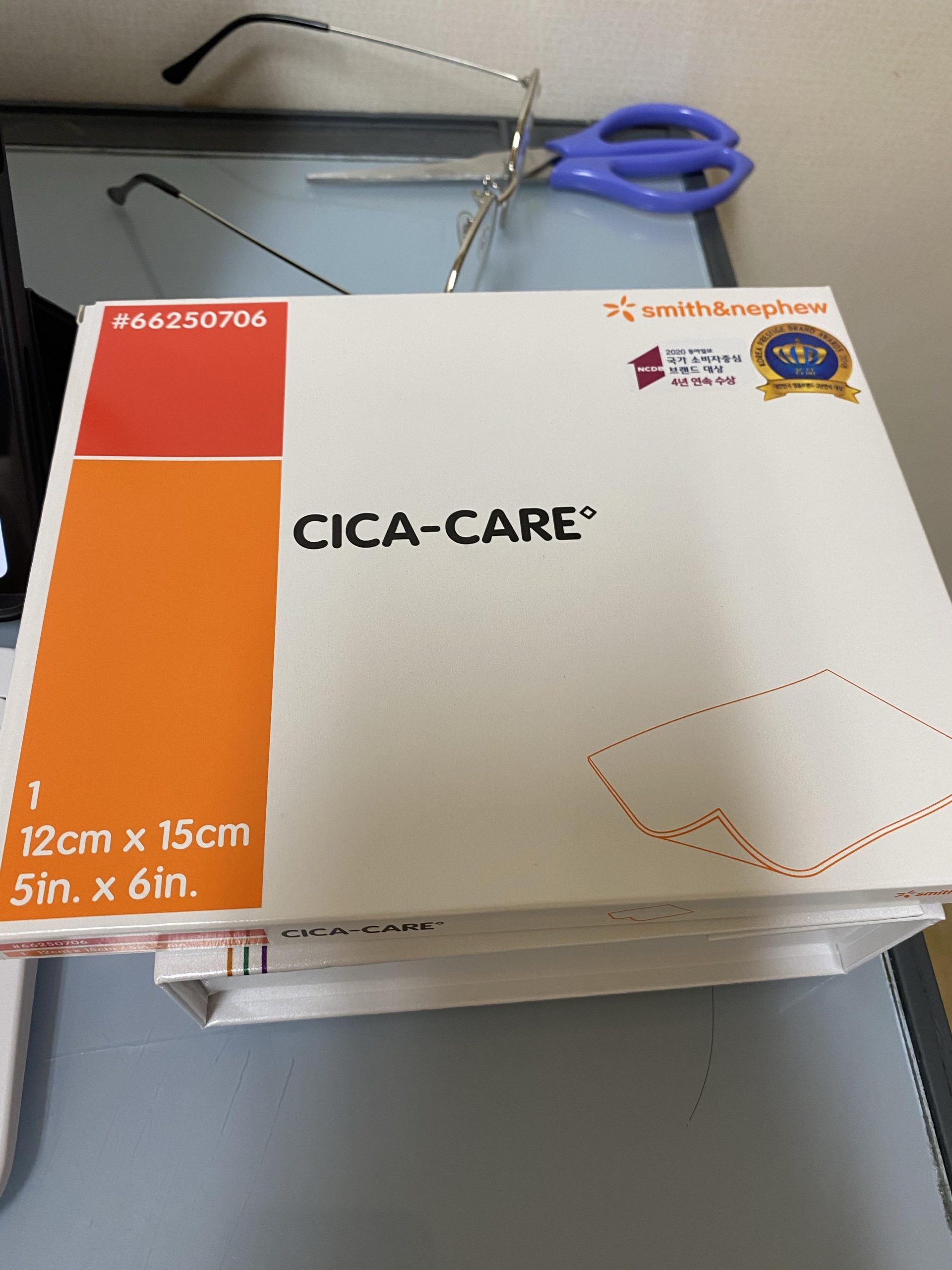 시카케어라는 흉터 밴드입니다. 이거는 24시간동안 붙이는 밴드고요.